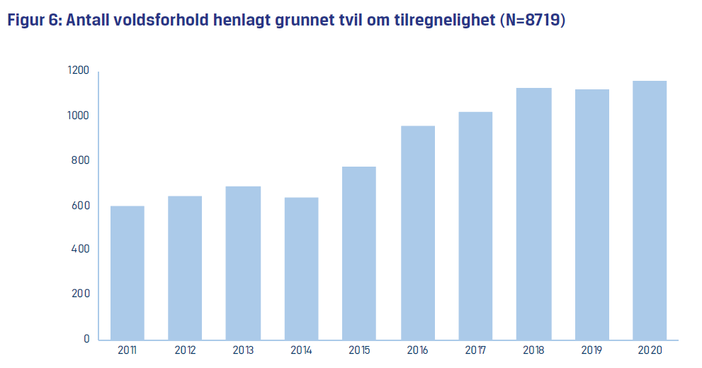 - 3244 personer fikk til sammen 8719 voldsforhold henlagt på grunn av tvil om tilregnelighet.